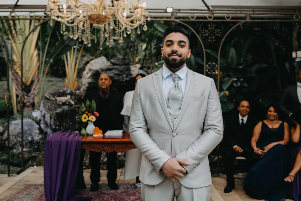André estava perfeito! Eu tinha quase certeza que ele estaria de verde-musgo, mas minha mãe disse que durante a prova, foi inevitável todos se encantarem com essa cor – inclusive ele. E sim, eu não sabia como era a roupa do noivo. Justo, né?